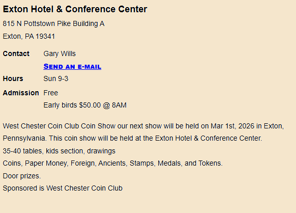 2026 Show dates not scheduled yet for Oaks, PA