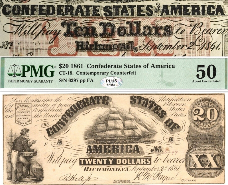 One avenue of counterfeits collectible and legal to own would be contemporary Confederate States notes from the Civil War era. Not modern souvenirs or facsimiles but those made during the early 1860’s. Produced by private business men, these were sold in bulk during that period and caused headaches and inflation for the Confederate states economy. It is not known whether the Union government was involved in counterfeiting or distribution although this is a common strategy during wartime. An informative video by Pierre Fricke, author and well known expert on the issue is available here(approximately 45 minutes in length); video