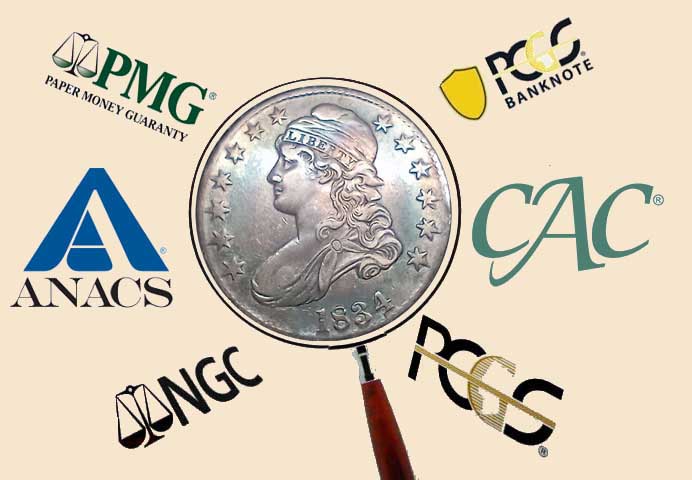 We keep submission privileges at the companies to the right which are the major firms. A decision must be made on which one to submit to. This depends on the coin or note being evaluated and is an important facet we can assist with.
