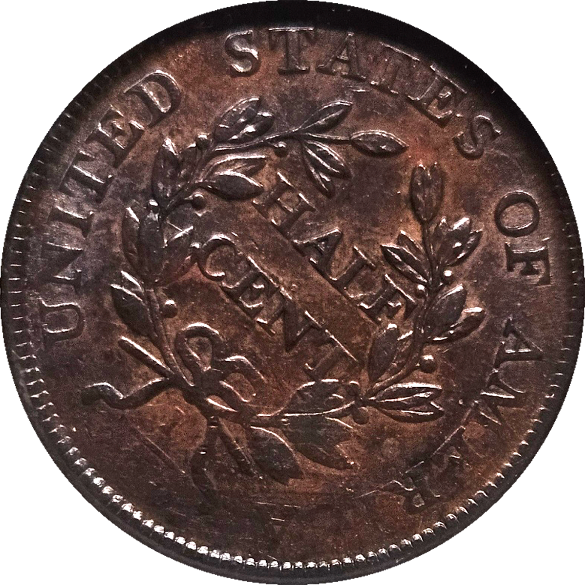 One of the standout characteristics of this coin is its rotated reverse—a fascinating minting anomaly that adds distinctiveness and intrigue. This unique feature makes it highly desirable among collectors who admire coins with notable variations. Combined with its historical significance, the rotated reverse transforms this Draped Bust Half Cent into more than just currency; it’s a captivating story encapsulated within a single artifact.