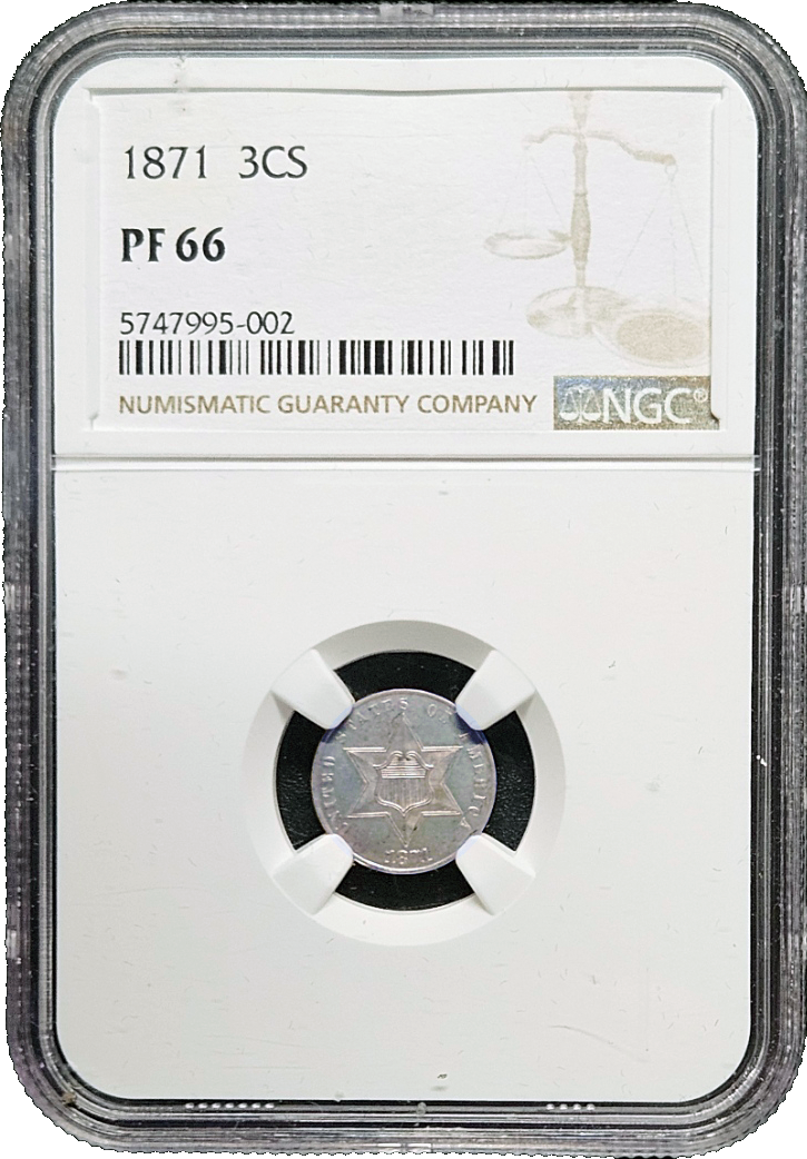 This particular 1871 three-cent silver boasts an NGC grading of PR66, indicating its exceptional condition. Such a high grade signifies that the coin has been meticulously preserved, retaining much of its original luster and detail. The sharp strike and minimal imperfections make it a standout example, highly sought after by numismatists. Owning a coin of this caliber is a privilege, offering a tangible connection to the past in unparalleled quality. Its condition makes it a superb addition to any serious collection.