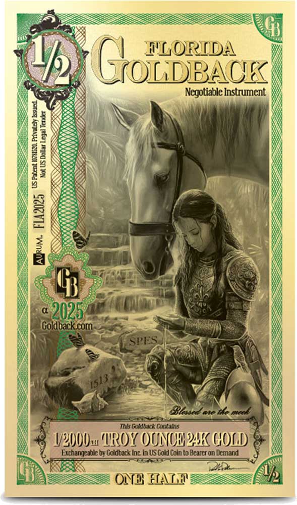 Discover the exquisite 2025 Florida State 1/2 Goldback Note, a stunning tribute to the Sunshine State’s captivating history and vibrant culture. This collectible note is not just an artistic piece; it represents a rich narrative that echoes through time, from the early European explorations to the enchanting legends associated with Florida.