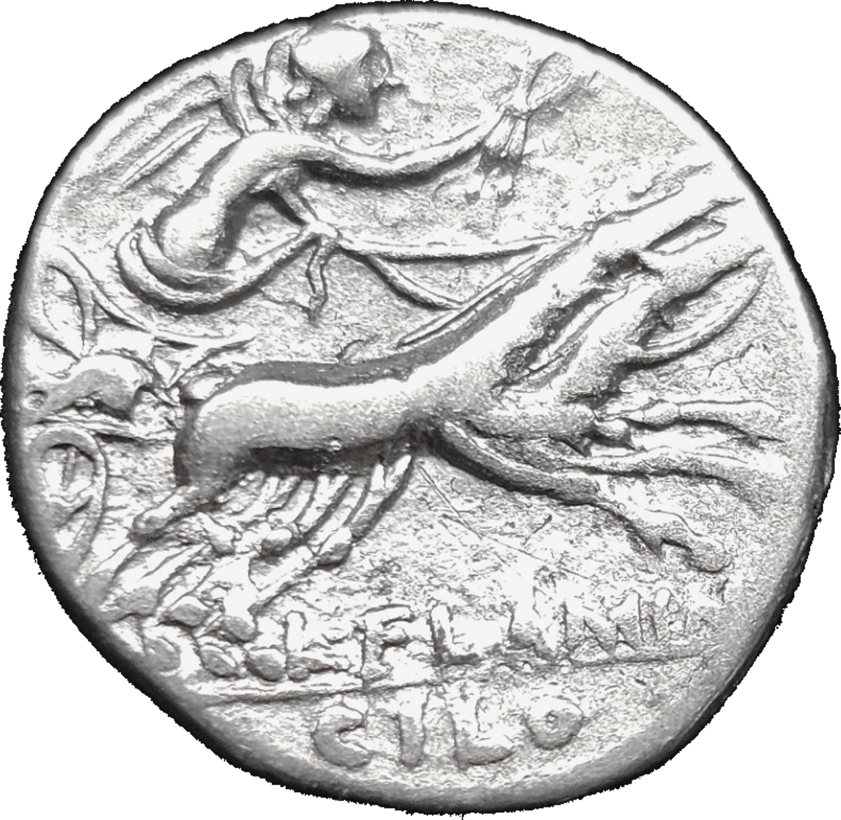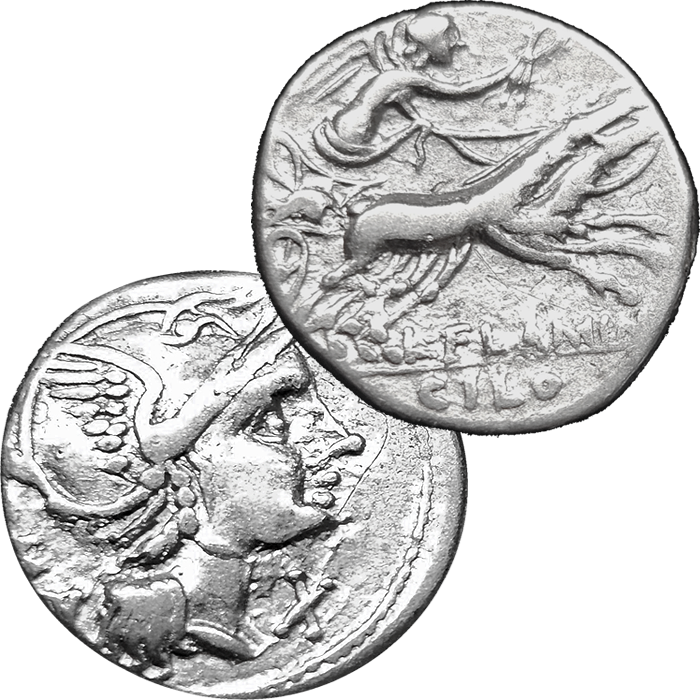 The L. Flaminius Chilo Silver Denarius is a testament to the extraordinary skill of Roman engravers. Struck in high-quality silver, this coin features intricate details that illustrate both the culture and sophistication of its era. The obverse presents an iconic depiction of Roma—helmeted and stately, symbolizing the protectress of the city. On the reverse, the artistry continues with depictions that often convey significant historical or mythological symbolism, ensuring each coin holds meaning and intrigue for historians and collectors alike. Cilo or Chilo is the surname of a patrilineal clan of ancient Rome composed of several families of the same name claiming a common ancestor and belonging to a common religious cult